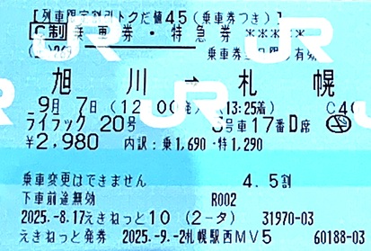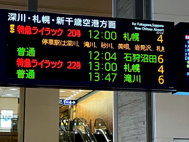 札幌12:00発ライラック17号で旭川へ、