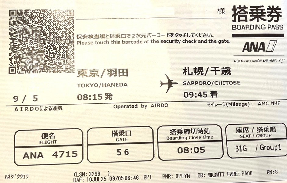 東京は雨、羽田発8:15 ANA4715便で新千歳空港へ