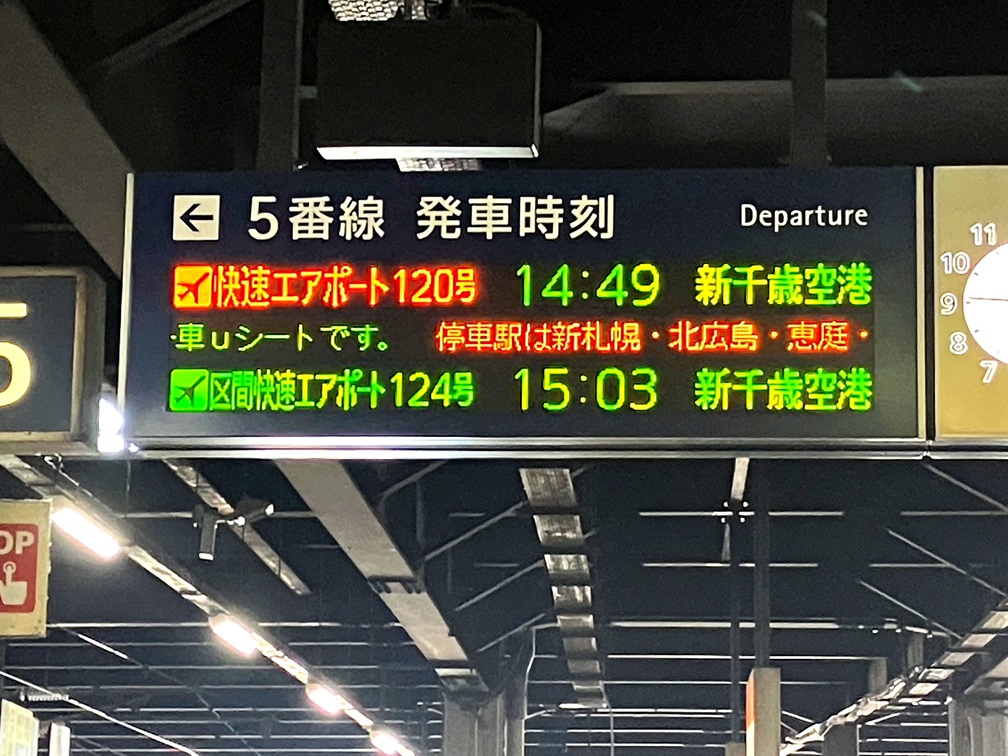 すすきのから地下鉄で札幌へ行き、JRで新千歳空港へ、