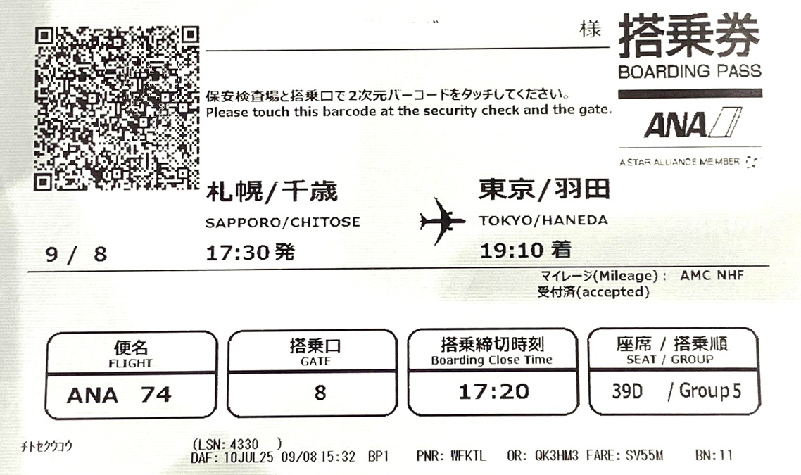 17:30発ANA74便で羽田へ、