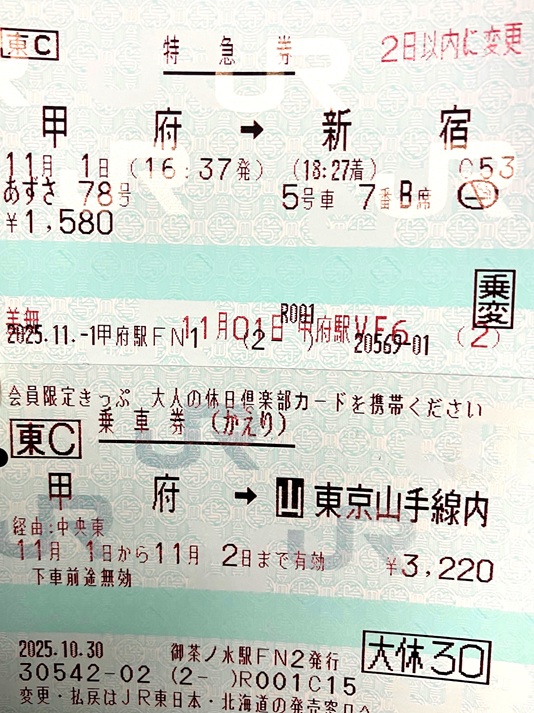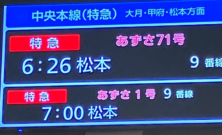 新宿駅発 6:26 あずさ71号(臨時号)で甲府へ、