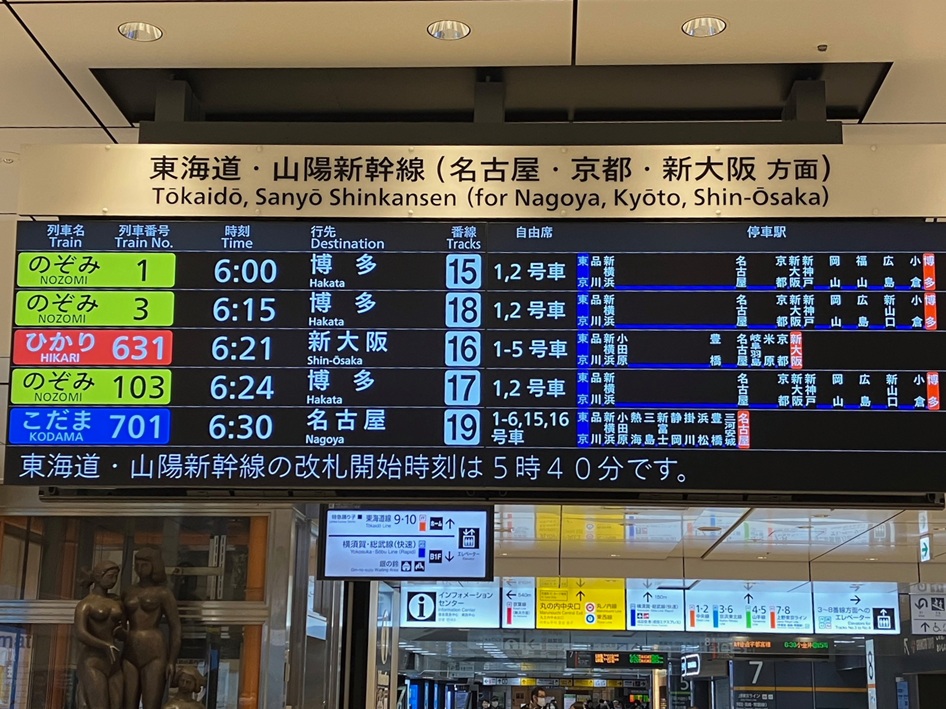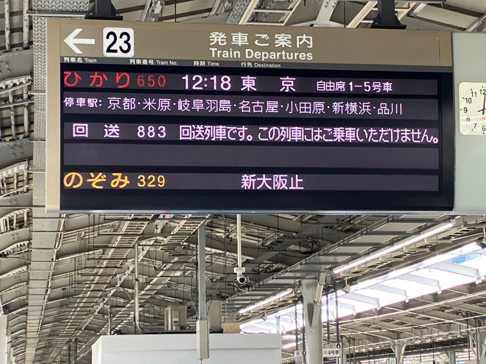 東京 6:21発ひかり631号 で出発 9:21 新大阪着